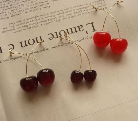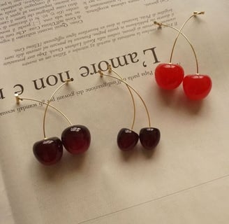 Cherry earrings are a perfect balance between chic elegance and playful charm. The soft curves and bright colours of cherries can instantly brighten up any outfit, making them ideal for both casual and evening wear. Whether you're wearing a simple t-shirt or a fancy dress, these earrings are sure to add a touch of personality to your look.Versatility for Any Occasion